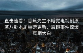 直击速看!香蕉先生不睡觉电视剧原著八卦本周重磅更新,震撼事件惊爆真相大白