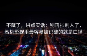 不藏了,讲点实话:别再抄别人了,蜜桃影视里最容易被识破的就是口播 开门见山:在视频内容同质化越来越严...