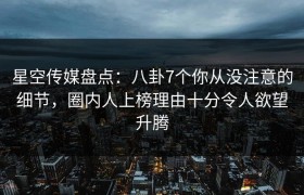 星空传媒盘点:八卦7个你从没注意的细节,圈内人上榜理由令人欲望升腾 在娱乐圈的璀璨光辉背后,隐藏着许...