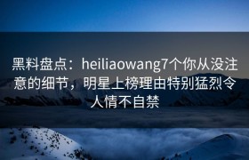 黑料盘点:heiliaowang7个你从没注意的细节,明星上榜理由特别猛烈令人情不自禁