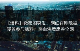 在这个信息爆炸的时代,每天都有大事小情被热议,但当一个匿名爆料账户在微密圈猛然披露“某知名网红涉嫌参...
